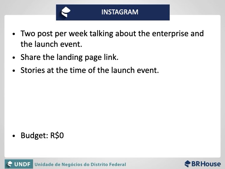 Media plan created to promote one of the enterprises sold by the real state BR House.